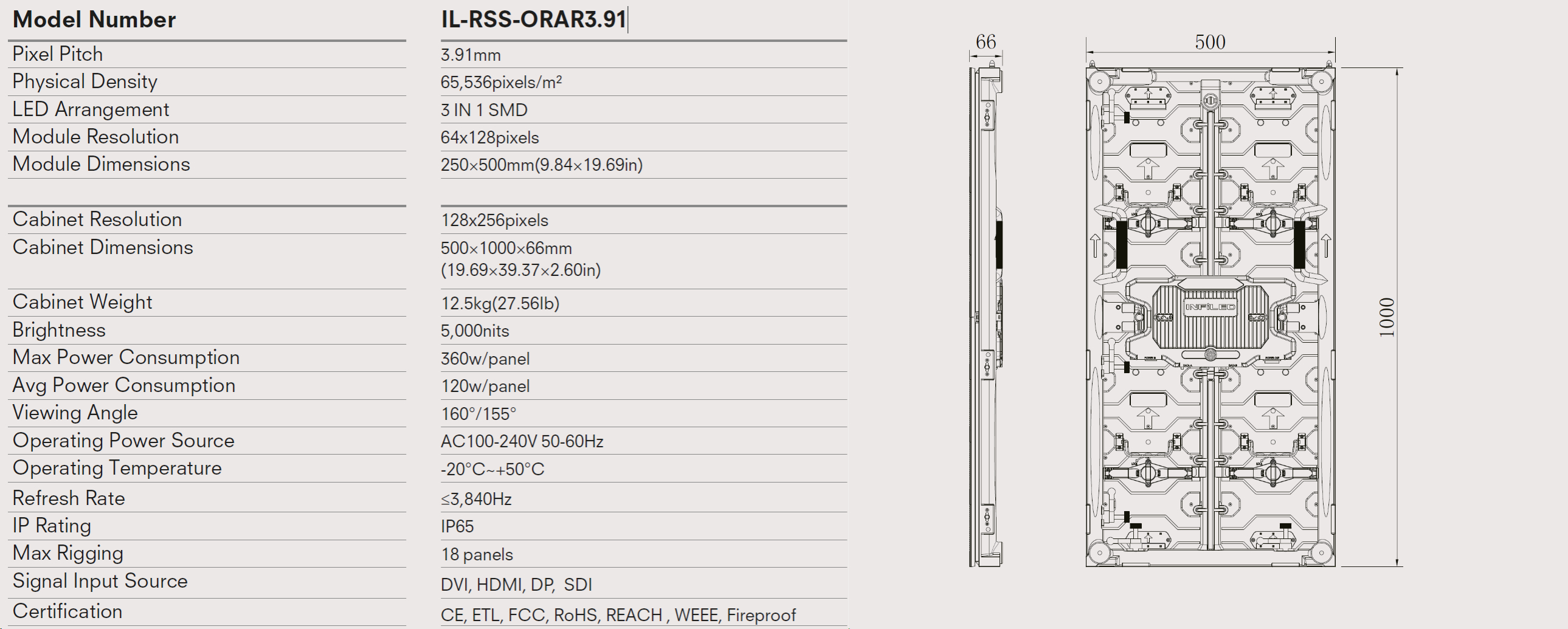 Augstas izšķirtspējas (3.91 mm/ppi) video ekrāns, kas paredzēts lietošanai gan iekštelpās gan ārā. Izceļas ar vienkāršu un ātru uzstādīšanu, apkopi, vieglu pārvadāšanu, elastīgu rotāciju un svaru. Var pielāgot dažāda izliekuma paneļiem. Ideāls risinājums konferencēm, izstāžu zālēm, TV šoviem, kā arī nelielu un liela mēroga pasākumiem.
